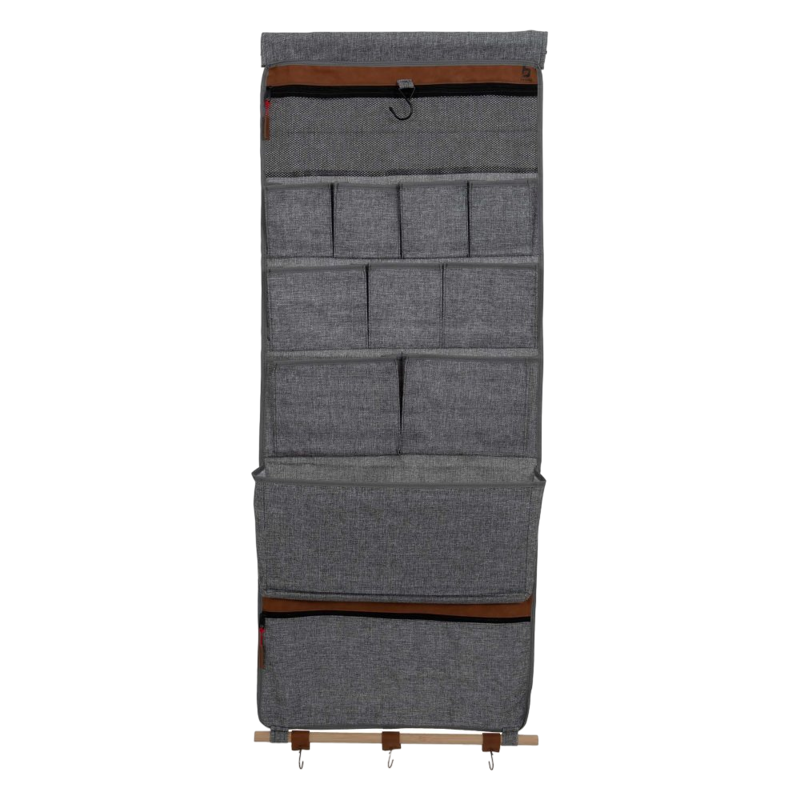 De Mathew Tentschort van Bo-Camp is een multifunctionele organizer met maarliefst 14 opbergvakken van verschillende groottes. Gemaakt van Oxford Polyester met een linnen look en leren details. De organizer heeft elastische banden, haken en extra opbergruimte aan de achterkant. Op diverse manieren te bevestigen, door middel van klittenband, een pees, de ophangogen of aan de haak. Ideaal voor in de caravan of tent.