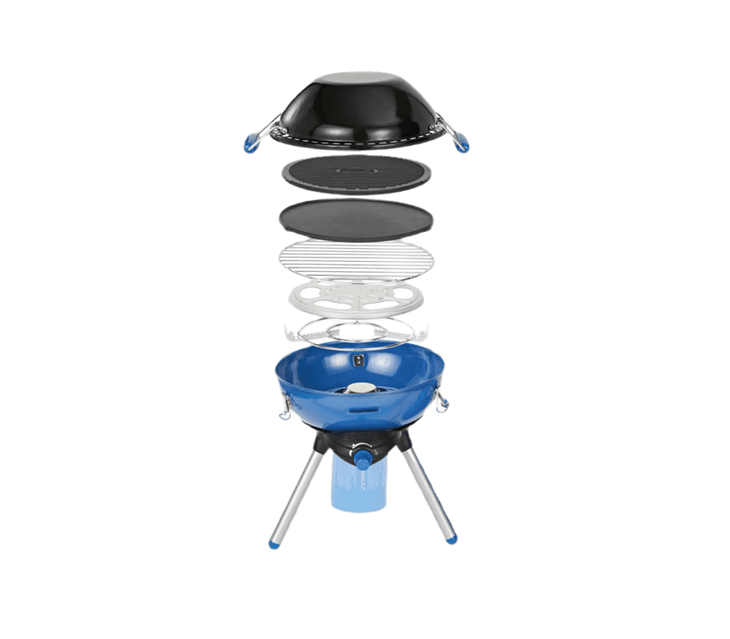 De mogelijkheden die je hebt met de Party Grill 400 van Campingaz zijn bijna eindeloos. Bakken, koken, grillen, plancha, en zelfs wokken! Want dat doe je in de deksel. Hij staat op stevige poten en is gemakkelijk te vervoeren. Dus gooi maar achter in de wagen, deze alleskunner.