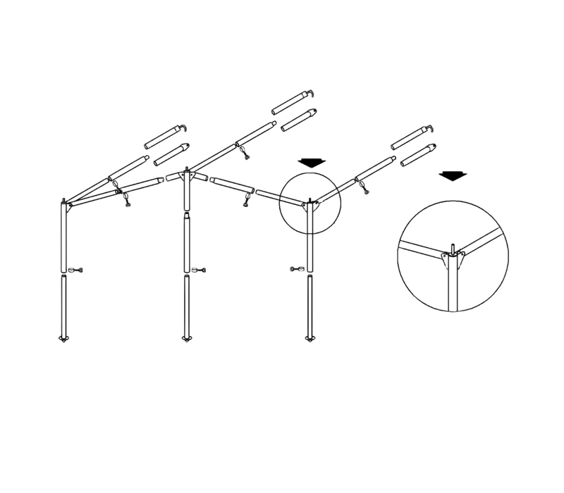 Universeel luifelframe, zowel voor de Voortentluifels als Caravanluifels. De maximale diepte die het frame kan overbruggen is ongeveer 245 cm, de maximale breedte ligt op ongeveer 640 cm. Voor grotere maten kan het frame verbreed worden met een los stokdeel, voor meer informatie vraag gerust één van onze voortentspecialisten om advies.