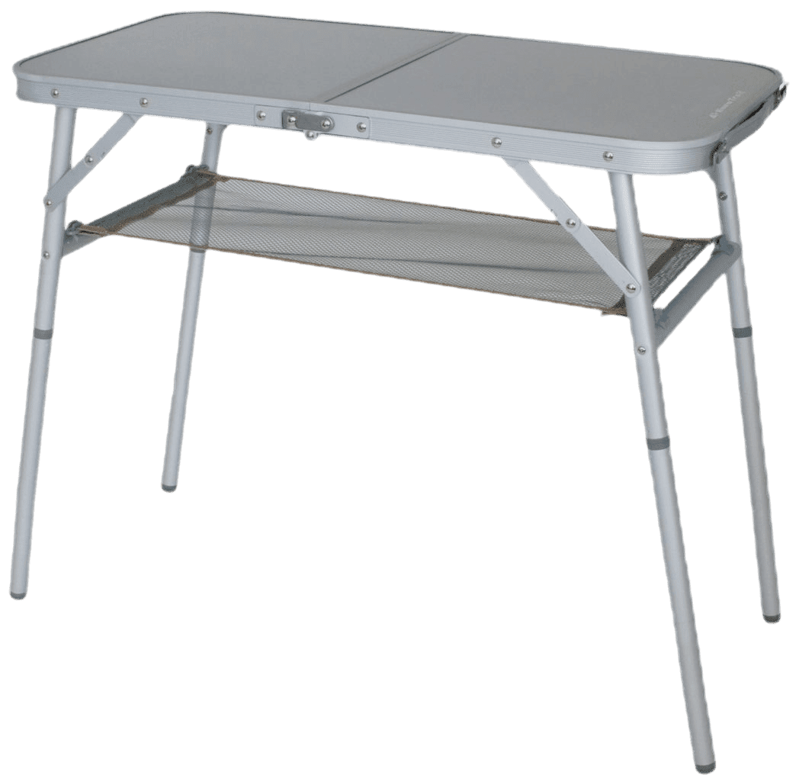 Ideaal zo’n campingtafel met watervast en hittebestendig blad! De St.Remy van Eurotrail heeft een heel handig netje onder het blad waar je kranten en ander leesvoer in opbergt. De poten zijn in twee hoogtes instelbaar. De tafel weegt bijna 3,9kg.