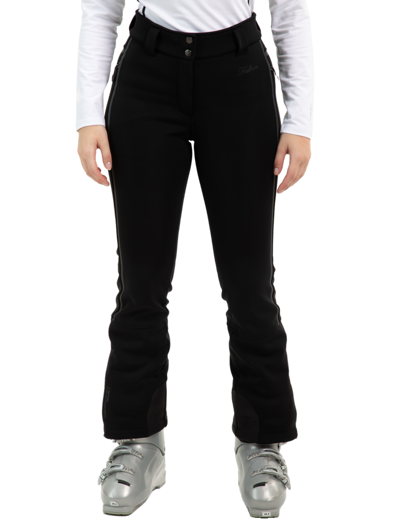 Deze stijlvolle zwarte Siobhan dames skibroek combineert comfort en functionaliteit voor een zorgeloze dag op de piste! Gemaakt van super stretch softshell, biedt hij optimale bewegingsvrijheid. Met trendy seal-on tape strepen over de kuiten en onderrug heeft deze broek een unieke look. Onderaan vind je sneeuwmanchetten, ritssluitingen en verstevigde inzetten, perfect voor intensief gebruik in de sneeuw.