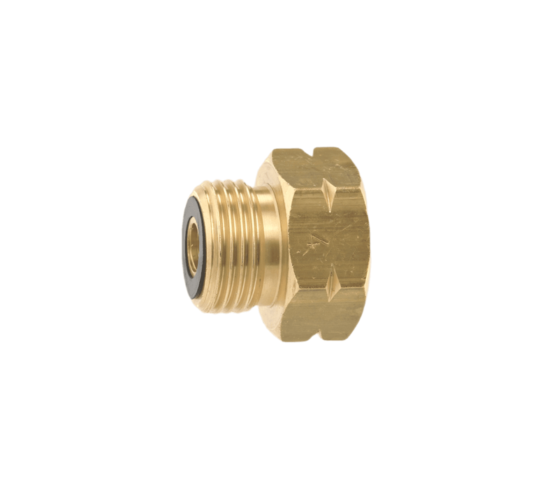 De Gimeg Verloopnippel Shell Binnen x Din Buiten is gemaakt van messing.