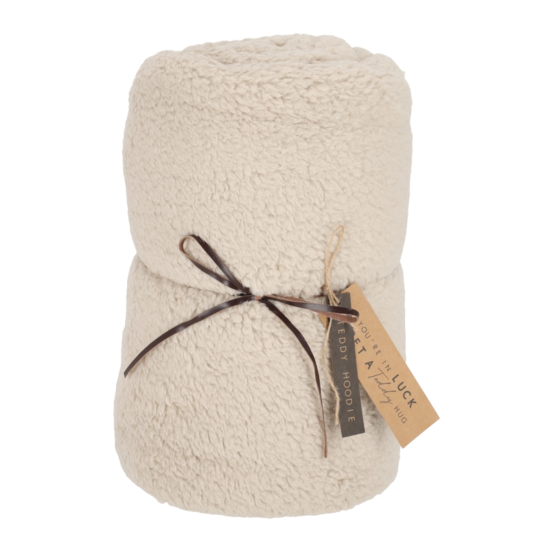 Maak kennis met de Teddy Hoodie Deken. Deze knusse hoodie met capuchon en armopeningen is gemaakt van superzacht teddy fleece, waardoor je heerlijk warm blijft tijdens koude dagen. Of je nu op de bank een film kijkt of een boek leest, deze hoodie biedt ultiem comfort. Een must-have voor iedereen die van gezelligheid houdt!