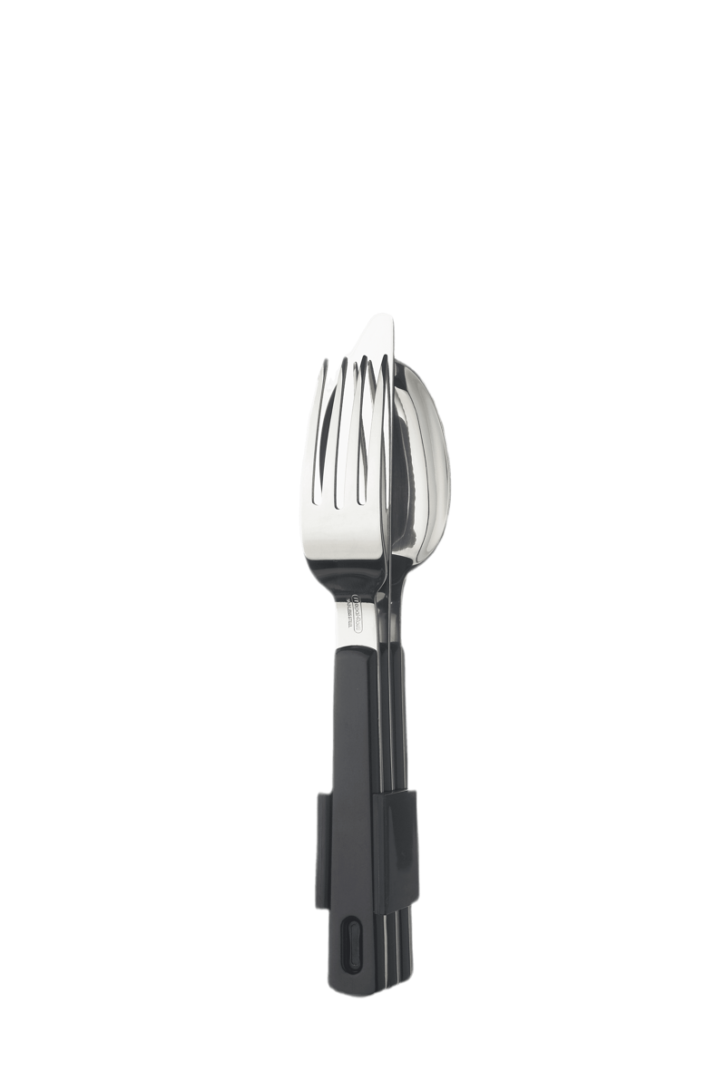 Kampeerbestek van Rosti Mepal: een handige aanvulling op je campingservies, en makkelijk mee te nemen! Deze setjes bevatten mes, vork en lepel, en de boel wordt bij elkaar gehouden door een handige kunststof clip. Verkrijgbaar in verschillende kleuren, leuk om te combineren.