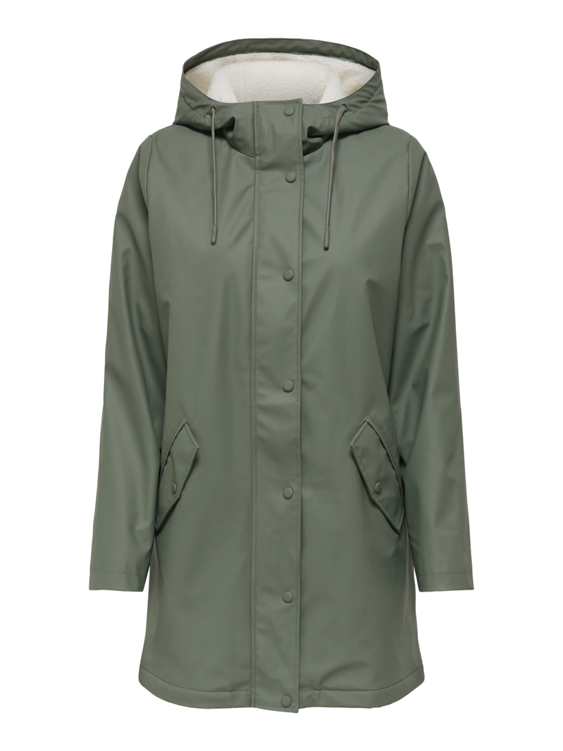 Sally Regenjas van ONLY houdt je droog tijdens lichte buien. Met capuchon en lange pasvorm voor extra bescherming.