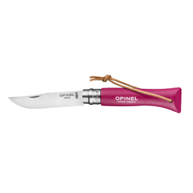 Dit Zakmes N°06 van Opinel met handig koord heeft een Virobloc vergrendeling en is gemaakt van roestvrij staal en een heft van gekleurd beukenhout.
