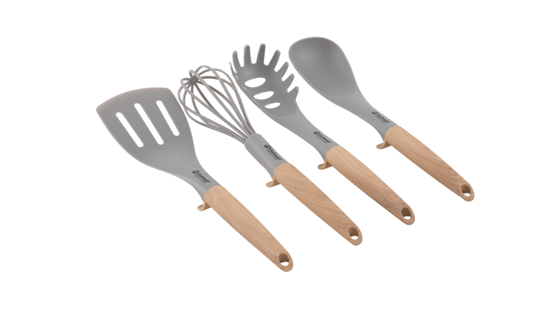 De Almada Keukengerei Set combineert stijl en functionaliteit voor elke kampeerkeuken. Gemaakt van stevig nylon met een polypropyleen-handvat, biedt deze set vier essentiële tools: een garde, opscheplepel, pastalepel en spatel. Lichtgewicht en compact op te bergen. Wordt geleverd met een handige mesh draagtas voor eenvoudig transport. Ideaal voor koken in de buitenlucht, of je nu kampeert of een picknick houdt. Let op: niet geschikt voor de vaatwasser.