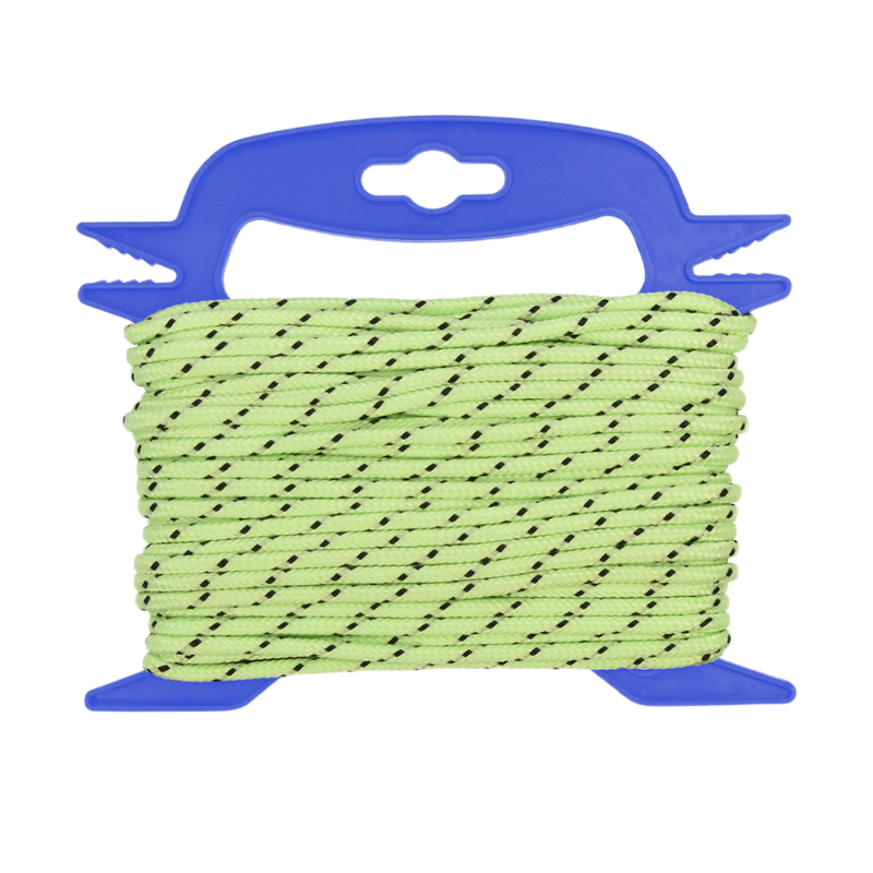 Met deze fluorescerende scheerlijn behoort struikelen over scheerlijn tot de verleden tijd. De scheerlijn is ideaal te gebruiken voor het spannen tenten, vouwwagens, luifels, windschermen, etc. De scheerlijn is op de gewenste lengte af te knippen. Nylon scheerlijnen zijn extreem duurzaam en sterk, omdat ze nauwelijks rekken of krimpen onder invloed van zon of regen.