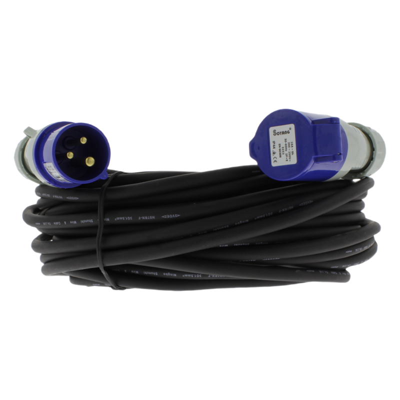 Een hoogwaardige neopreenkabel met CEE stekkers. Dit aansluitsnoer is geschikt als aansluitkabel voor op de camping of op de boot. De uiteinden zijn voorzien van een 3-polige CEE stekker en een 3-delige CEE contra stekker haaks. De kabel heeft een dikte van 1,5 mm2.