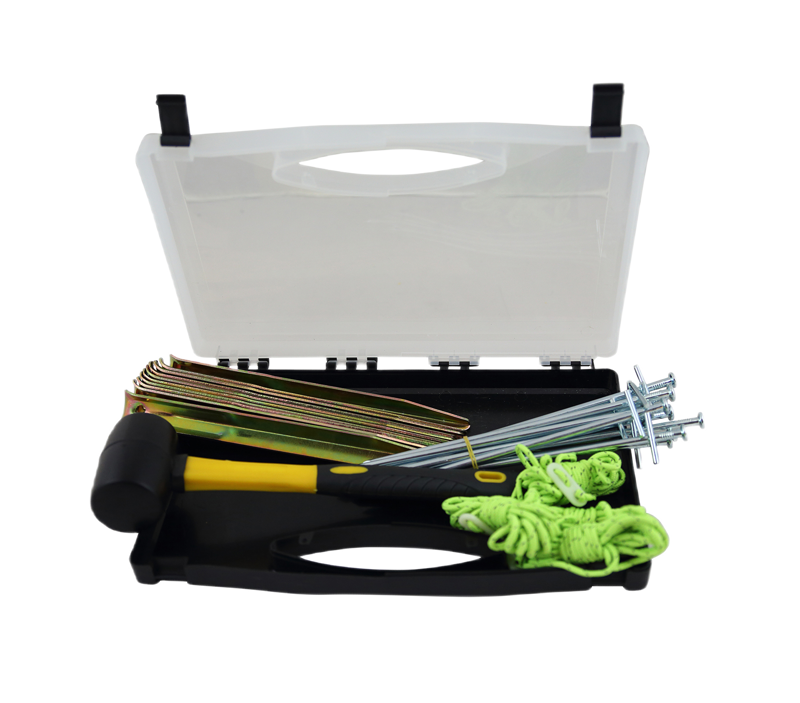 Met deze 25-delige koffer vol accessoires heb je alles bij de hand als je op vakantie gaat! De koffer is gevuld met haringen, rotspennen, scheerlijnen, scheerlijnverbinders en een hamer.