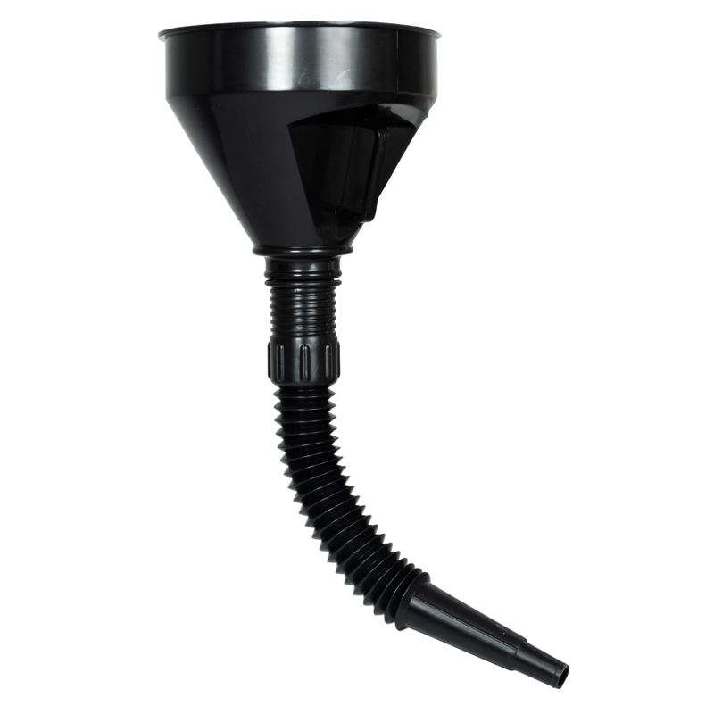 De Trechter met flex tuit is ideaal voor buitengebruik. De buigzame tuit voorkomt knoeien bij bijvullen.