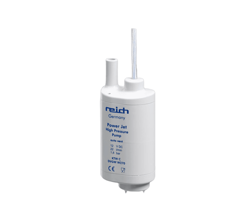Zeer krachtige PowerJet dompelpomp van Reich. De PowerJet pompt 22 liter water per minuut en heeft automatische ontluchting. Speciaal voor mensen die houden van een krachtige straal tijdens het douchen.