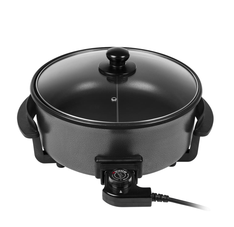 De Tristar PZ-9135 Multifunctionele Hapjespan XL is een veelzijdige elektrische pan met een diameter van 30 cm en een inhoud van 5 liter, ideaal voor het bereiden van diverse gerechten of het warmhouden van hapjes tijdens feestjes. Dankzij de meegeleverde panverdeler kun je de pan in twee compartimenten verdelen, zodat je meerdere gerechten tegelijkertijd kunt bereiden. Met een vermogen van 1500 watt bereikt de pan snel de gewenste temperatuur, instelbaar via de regelbare thermostaat tot maximaal 220°C. De antiaanbaklaag voorkomt aanbakken en maakt schoonmaken eenvoudig. Voorzien van geïntegreerde handvatten, antislipvoetjes en een transparante deksel met stoomuitlaat voor veilig en comfortabel gebruik.